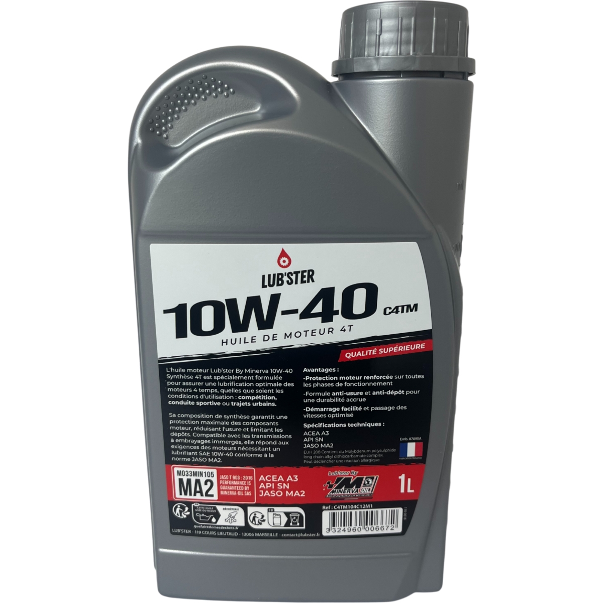 Lub'ster By Minerva nous propose l'huile moteur 4T 10W40 Sport 100% synthétique en 1 Litre