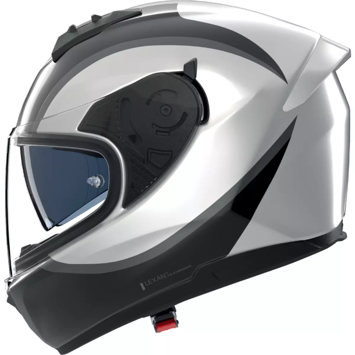 La visière panoramique ouvre un champ de vision large et clair, et le pare-soleil intégré protège naturellement des reflets. Sous son allure élégante, le N60-6 cache une véritable technologie de sécurité : coque en polycarbonate Lexan™, EPS multi-densité et homologation ECE 22-06, autant d’éléments pensés pour protéger sans compromis.