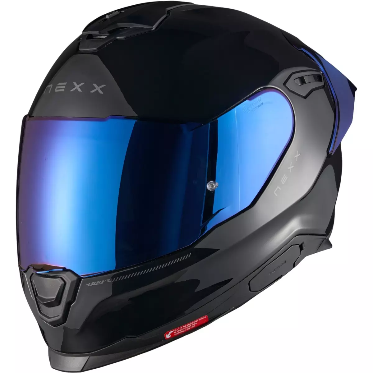 Nexx vous présente son casque intégral moto, le Y.100R Subsonic en coloris noir et bleu.