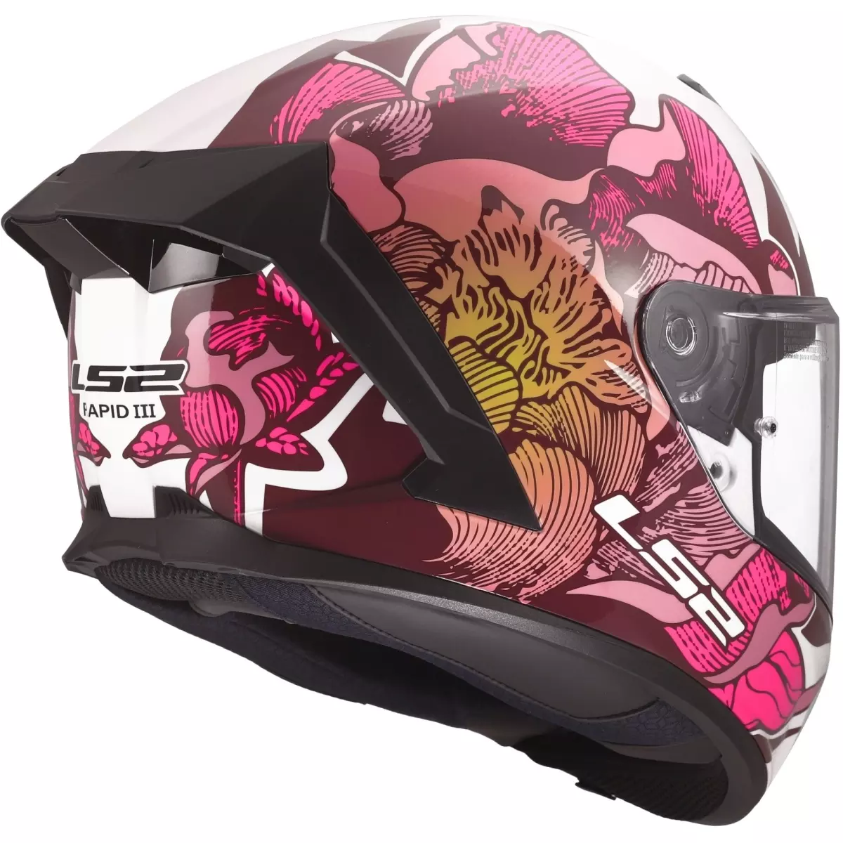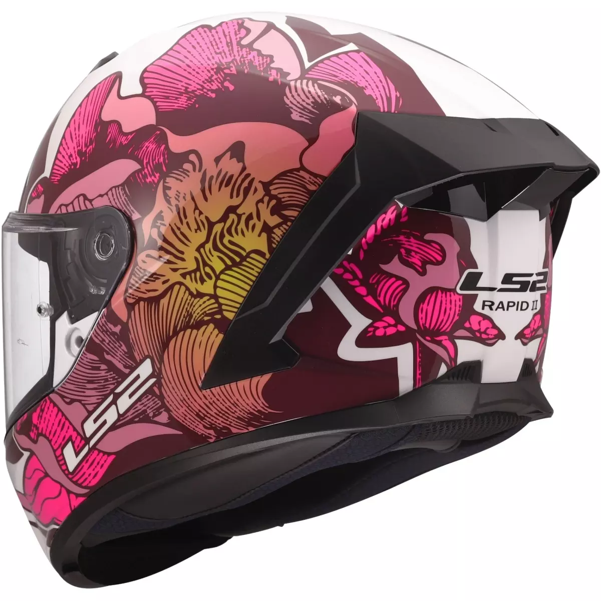 LS2 nous propose son casque intégral, le FF820 Rapid III Poppies II en coloris blanc et rose.