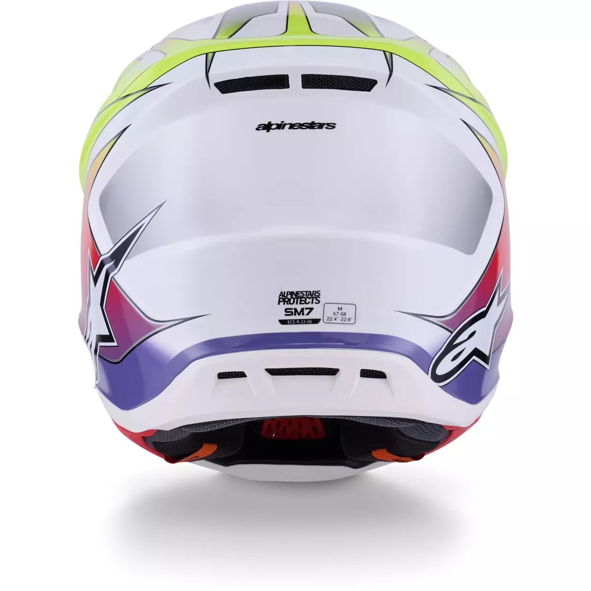 Description Casque Cross Alpinestars SM7 Fuse Blanc Jaune Violet