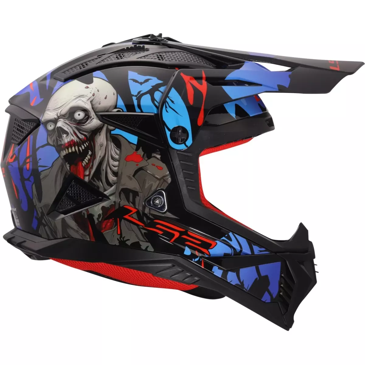 LS2 nous propose son casque cross, le MX708 Fast II Zombie II en coloris noir, rouge et bleu.