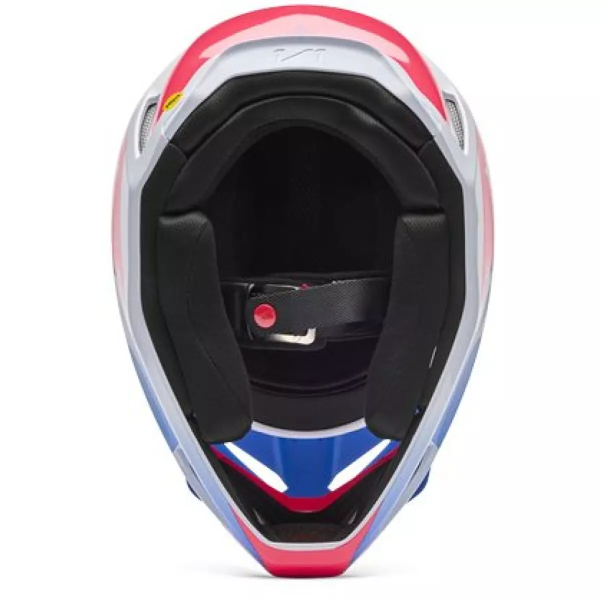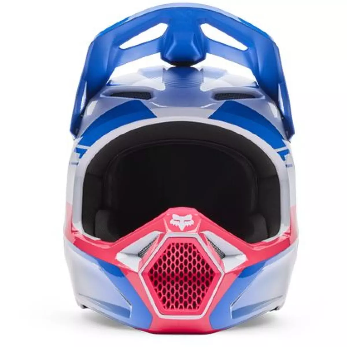 Fox vous présente son casque cross, le V1 Collect en coloris bleu et rose.