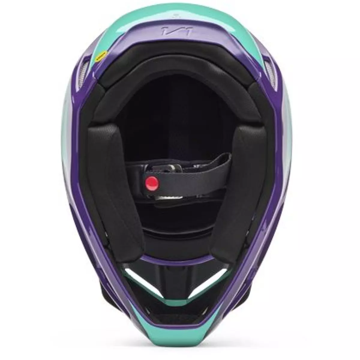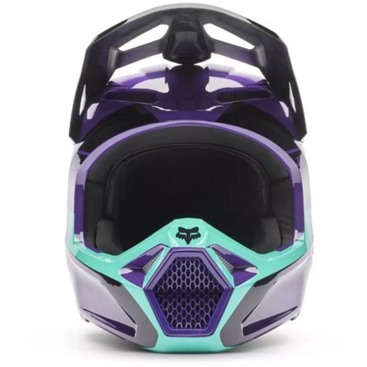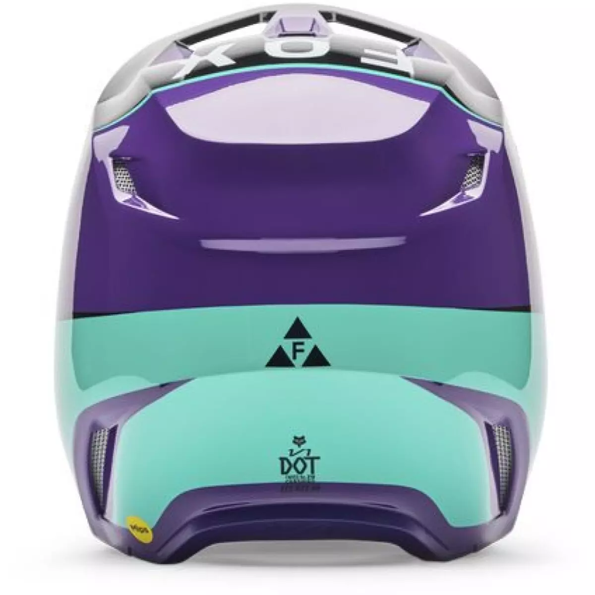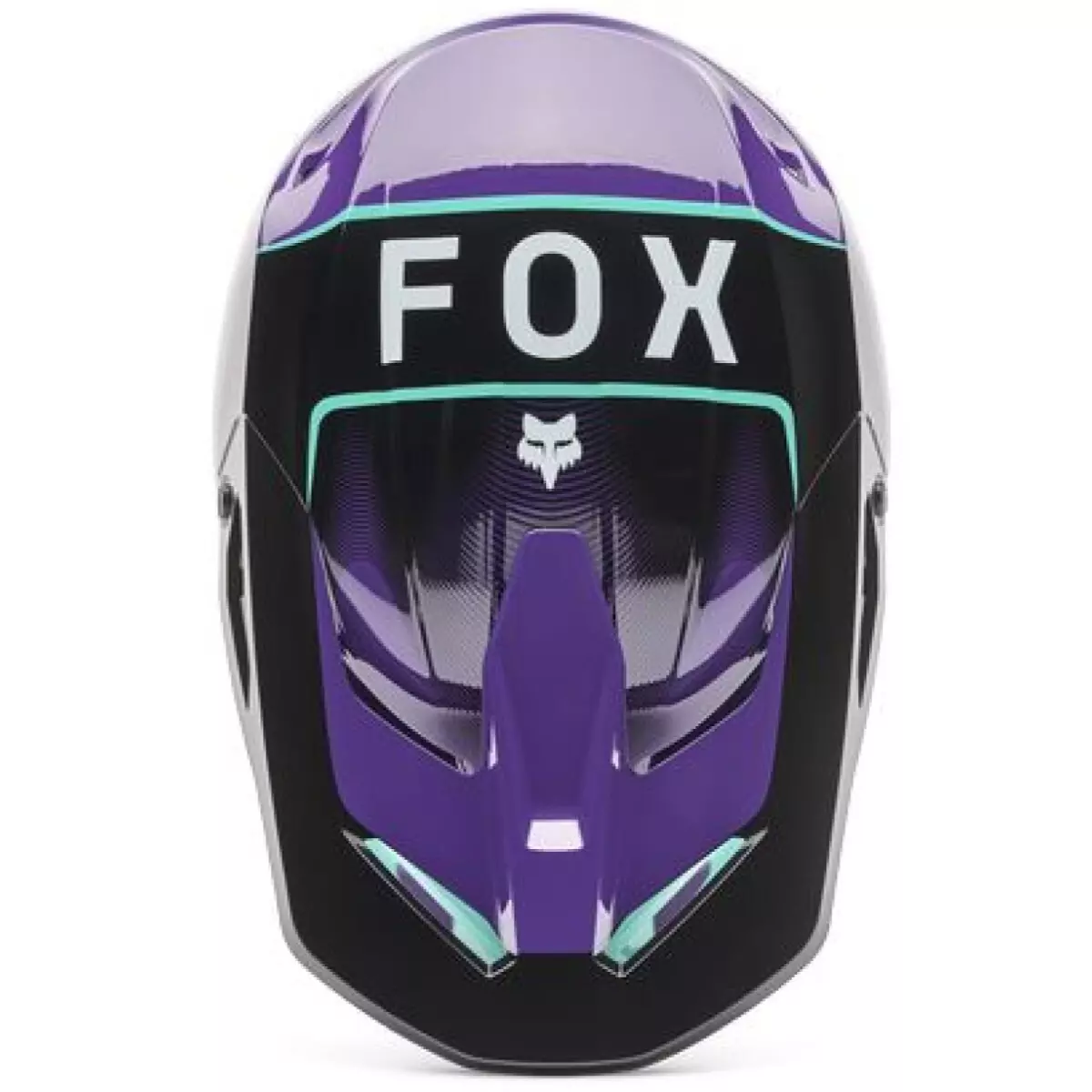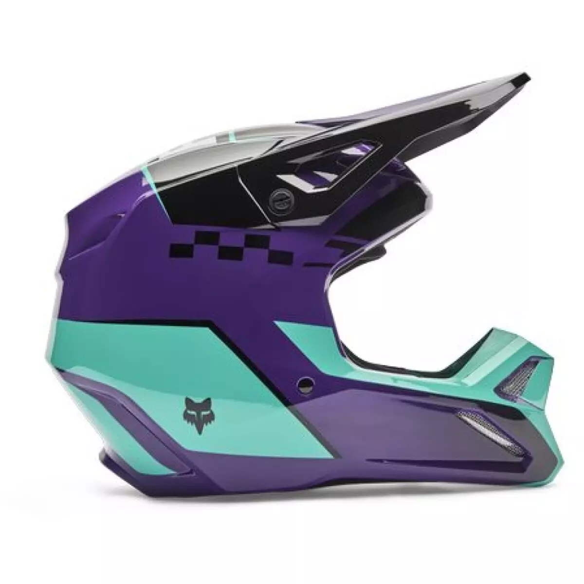 Fox vous présente son casque cross, le V1 Collect en coloris violet et bleu.