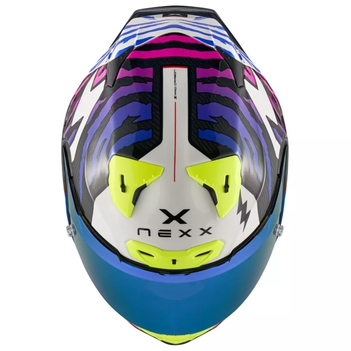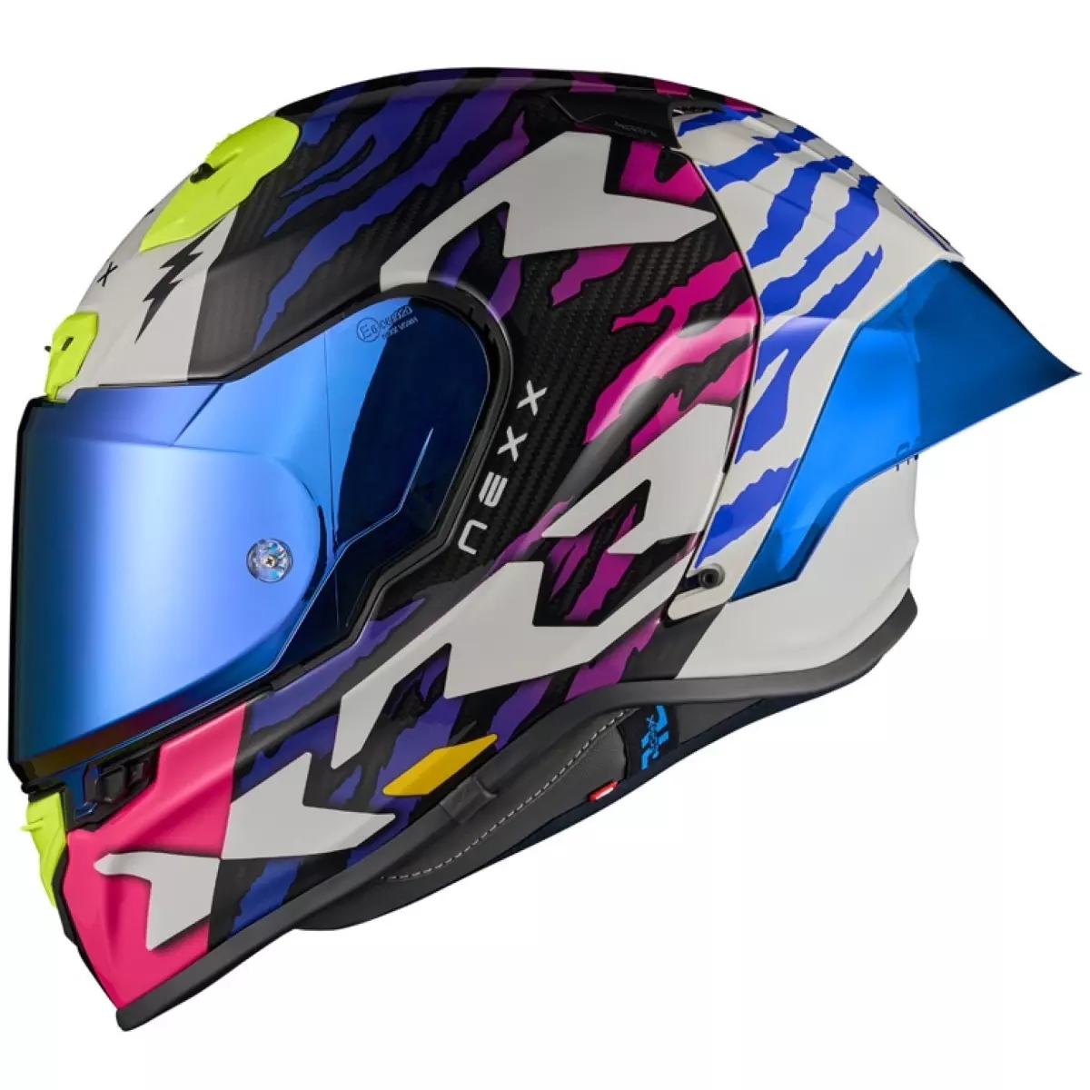 Nexx vous présente son casque moto racing intégral, le X.R3R Ziger en coloris violet et bleu.