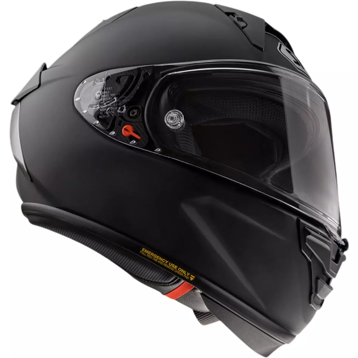 Afin de répondre aux standards les plus élevés de la compétition, ce casque est homologué ECE 22.06 et FIM 2. Il est équipé d’une boucle Double-D, référence absolue sur circuit, ainsi que du système E.Q.R.S. (Emergency Quick Release System) permettant l’extraction rapide et sécurisée des mousses de joues en cas d’intervention d’urgence.