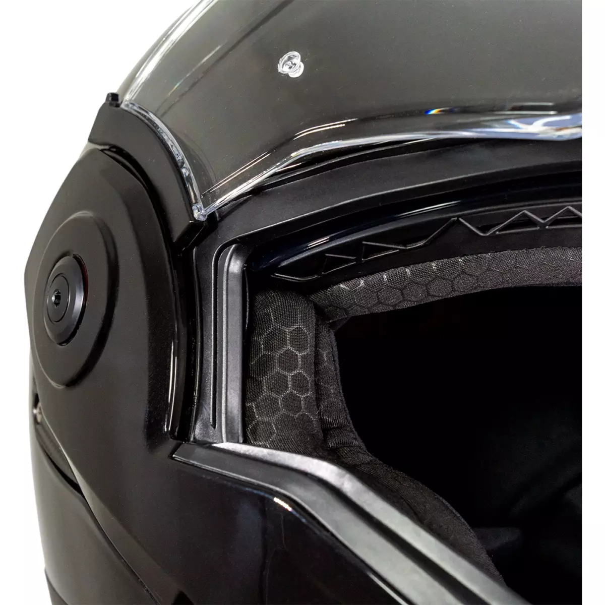 Sa coque en polycarbonate vous aussure une bonne protection et un poids maîtrisé. Conforme à la norme ECE 22.06 et homolgué P/J (jet et intégral), il est équipé d’une boucle micrométrique, garantissant un ajustement précis et une manipulation aisée, même avec des gants.