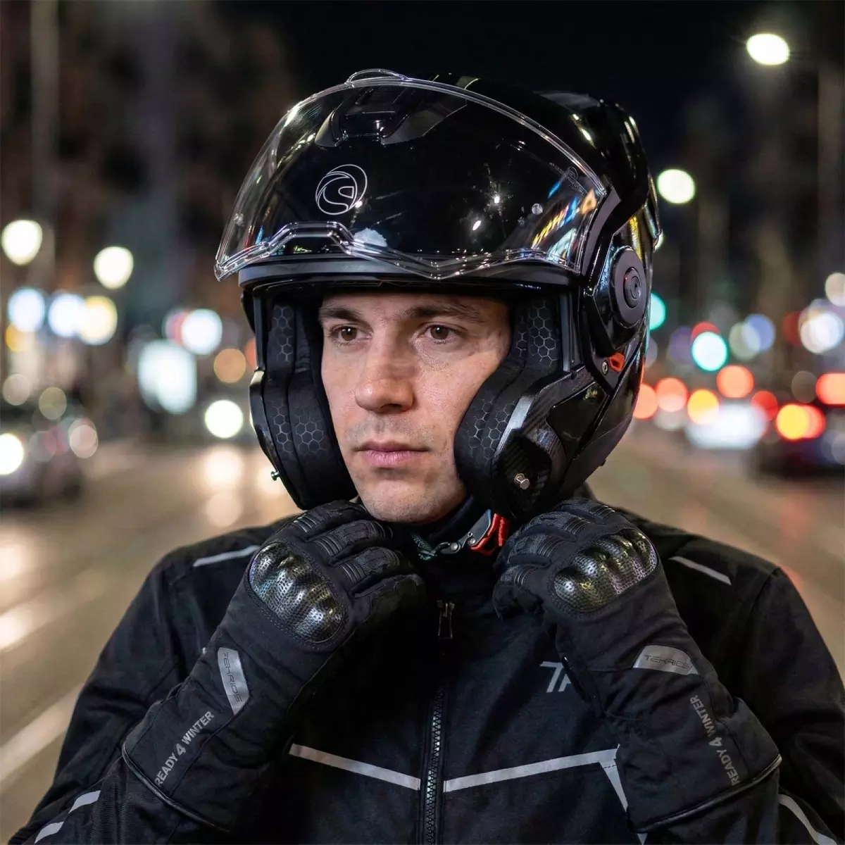 Enfin, le casque est prédisposé à recevoir un intercom universel et dispose d’une ventilation frontale au niveau de la mentonnière, favorisant une circulation d’air efficace lors des trajets urbains comme routiers.