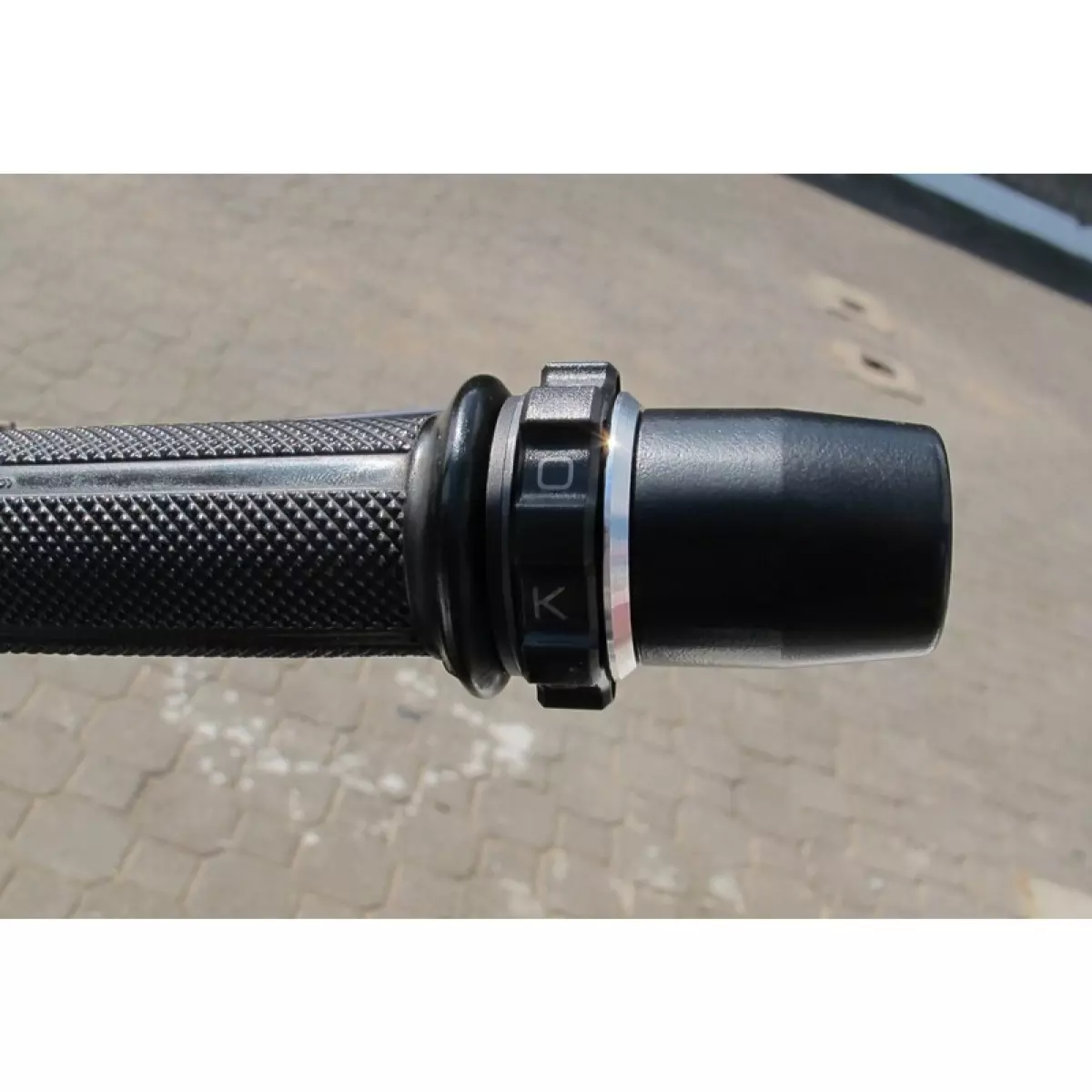 Le Kaoko Cruise Control est un stabilisateur de vitesse mécanique. Discret et ingénieux, il agit directement sur la poignée de gaz en appliquant une légère friction contrôlée, permettant de maintenir la poignée à la position souhaitée.