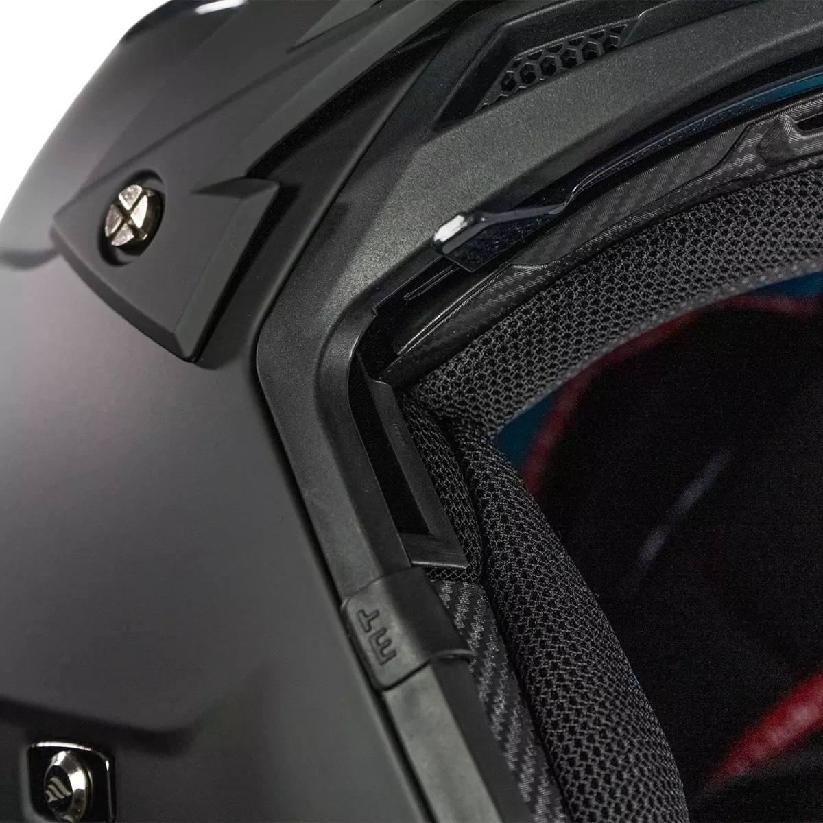 Sa coque en polycarbonate HIRP (High Impact Resistance Polymer) assure une bonne résistance aux chocs tout en conservant un poids raisonnable, adapté à un usage régulier. Conforme à la norme ECE 22.06, ce modèle répond aux exigences de sécurité actuelles. La fermeture par boucle micrométrique facilite l’enfilage et le retrait du casque, y compris avec des gants, tout en garantissant un maintien fiable.