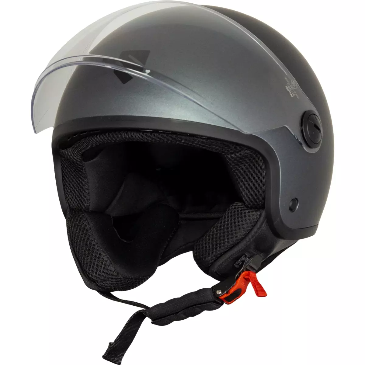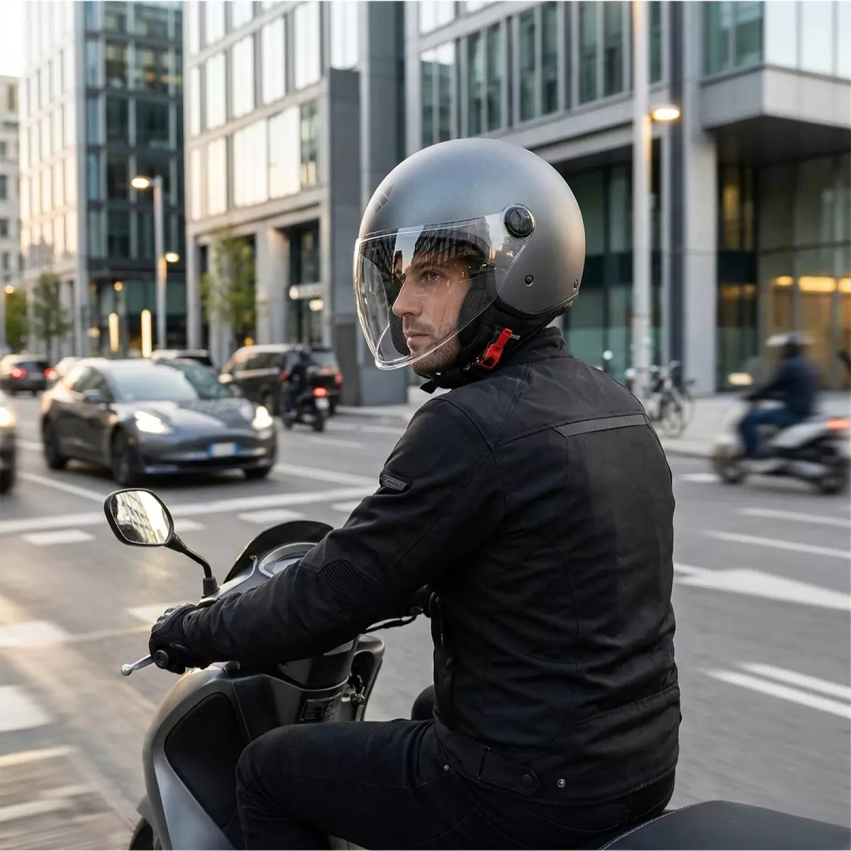 La visière incolore protège efficacement du vent et des projections, offrant un champ de vision dégagé adapté à la circulation en ville comme en périphérie.