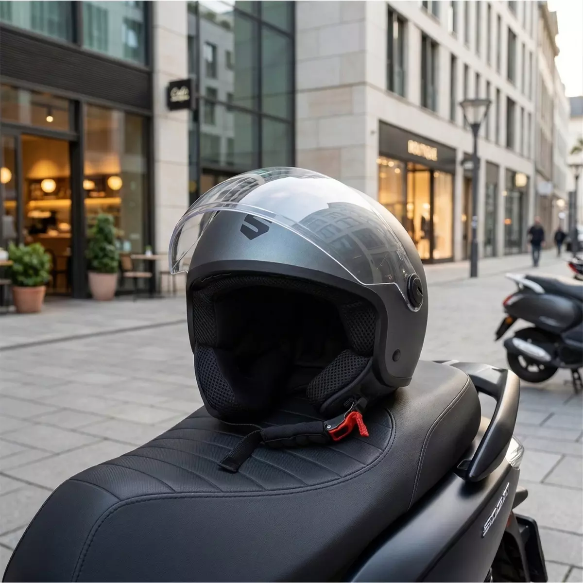 SPW nous présente son casque moto jet, le S-103 Solid en coloris titane mat.