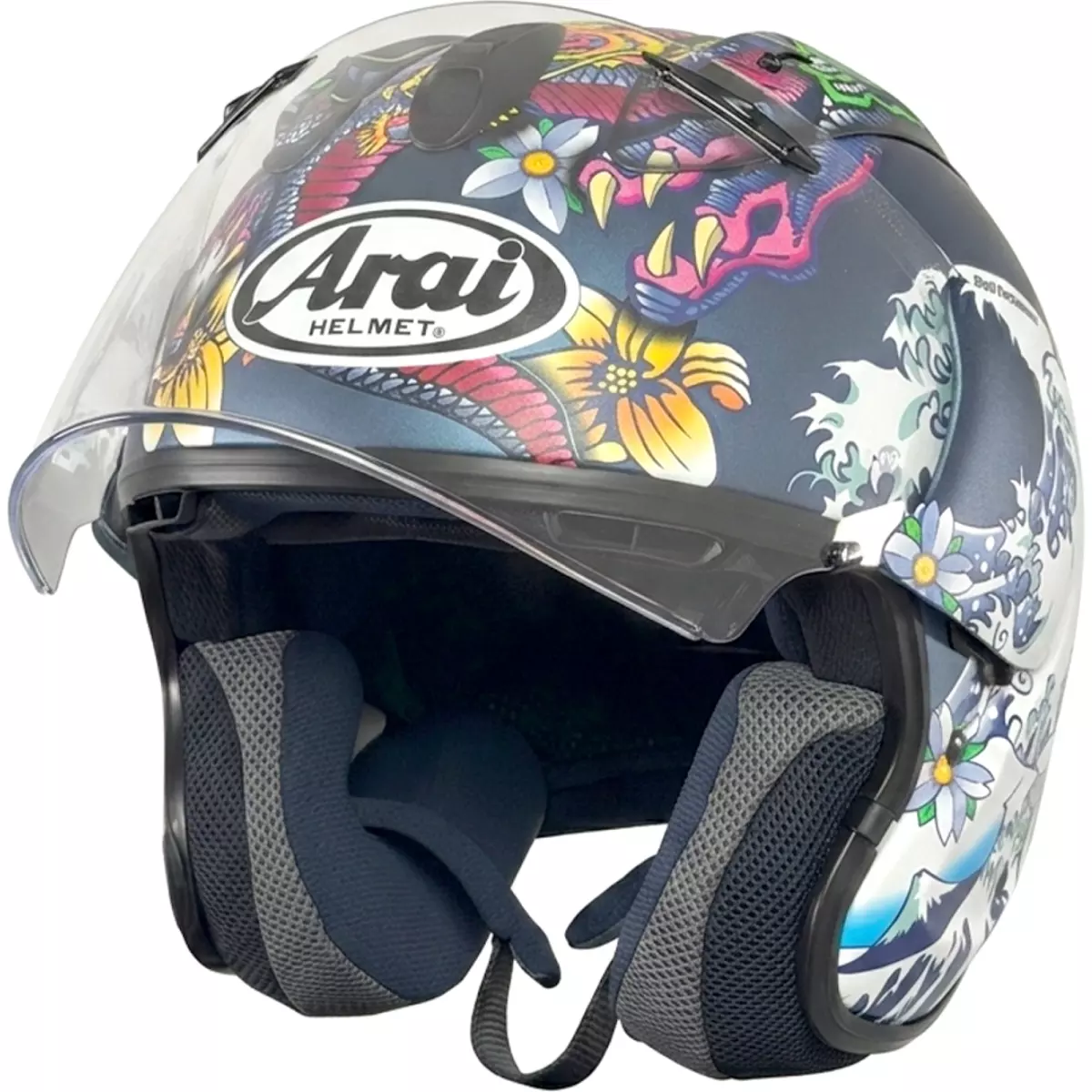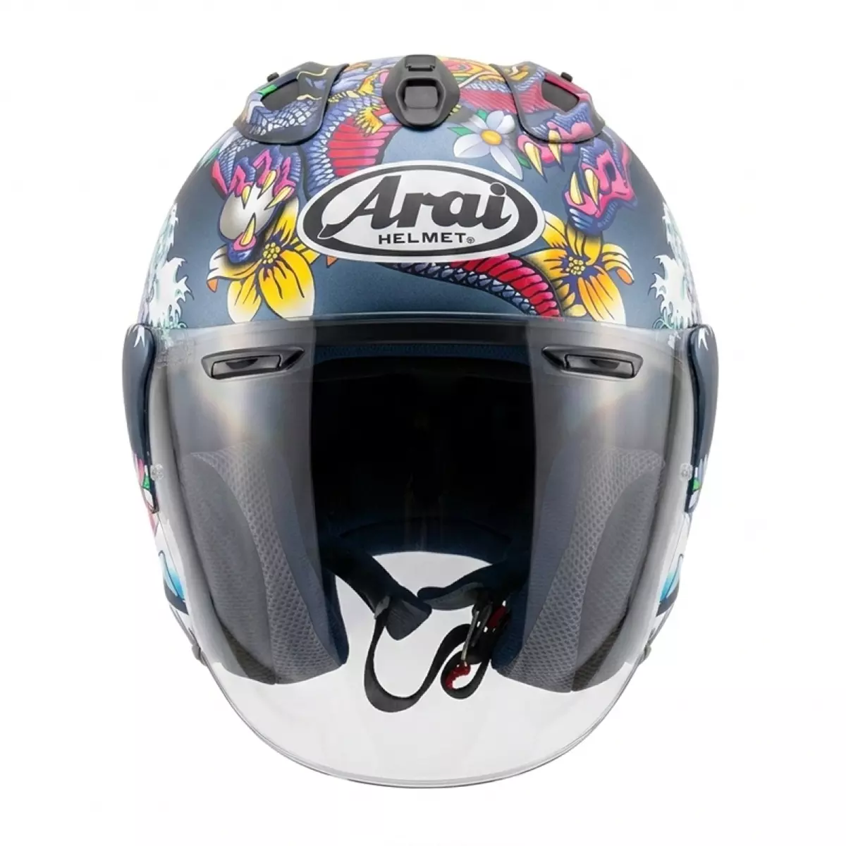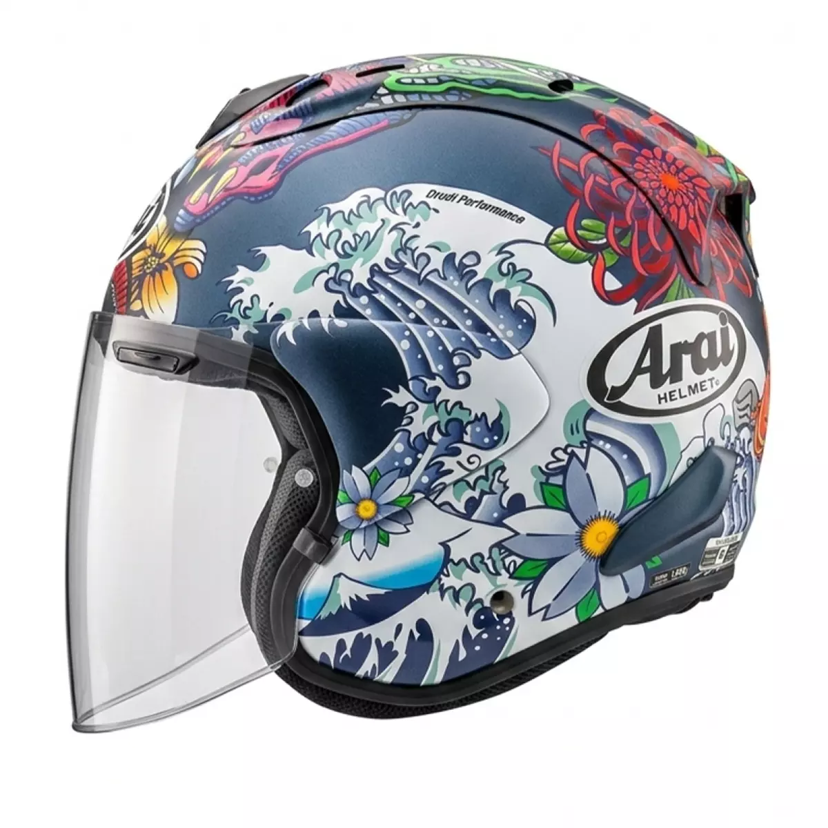 Arai vous présente son casque moto jet, le SZ-R VAS Evo Oriental en coloris bleu.