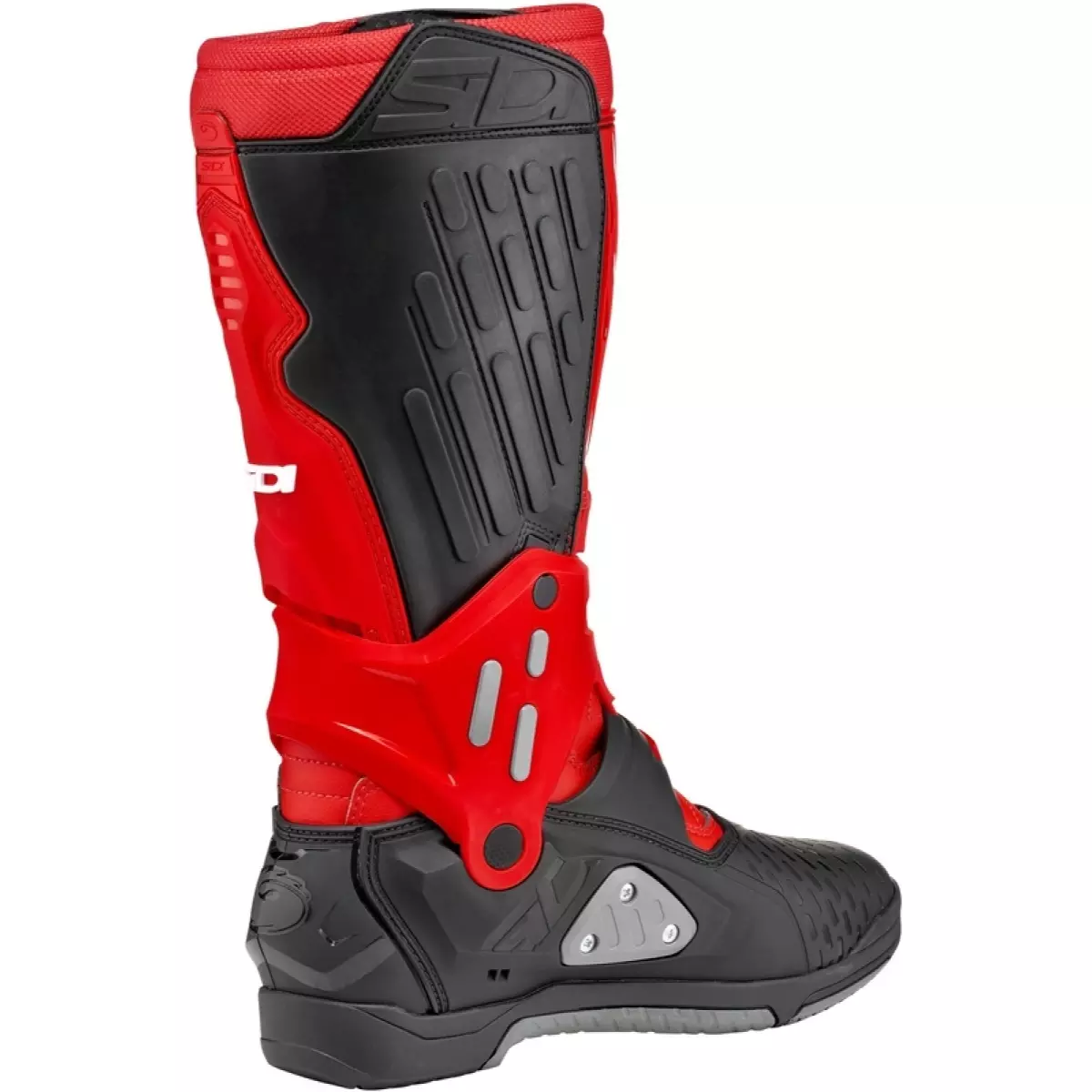 Sa structure repose sur un exosquelette interne en fibre de verre offrant un excellent maintien et une protection optimale sans alourdir la botte. Le système anti-hyperextension limite les mouvements dangereux tout en conservant une grande liberté de mouvement pour un pilotage précis.