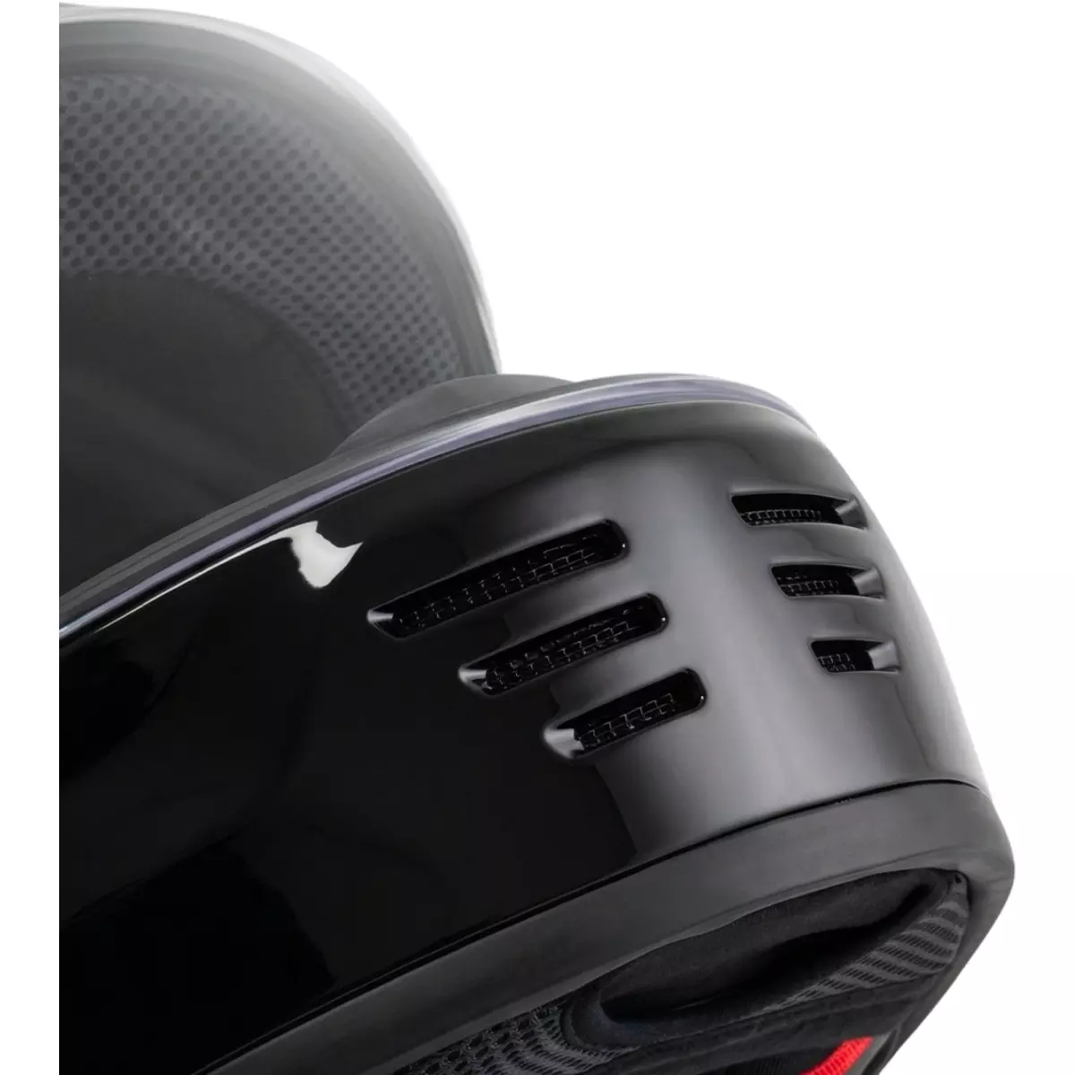 La ventilation repose sur sept prises d’air, dont six situées à la mentonnière et fermables depuis l’intérieur ainsi qu’une entrée frontale, associées à trois extracteurs arrière favorisant l’évacuation efficace de l’air chaud.