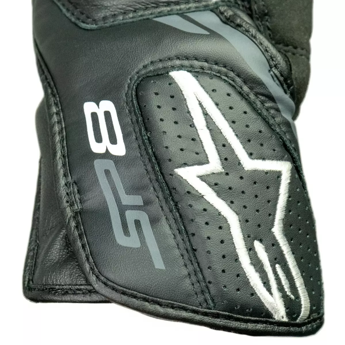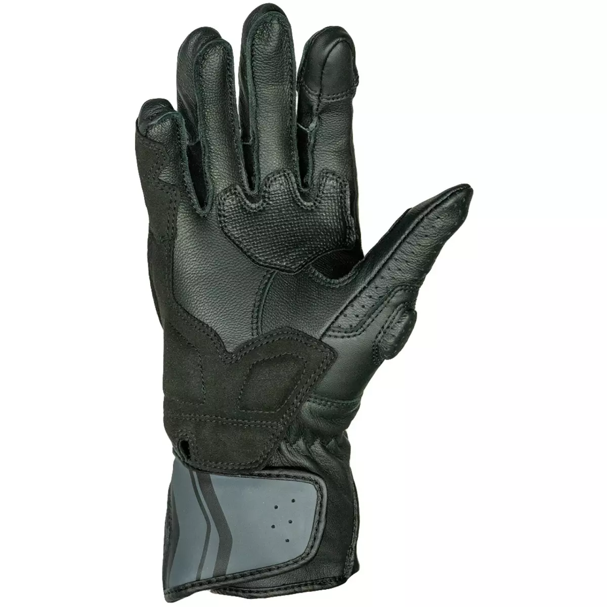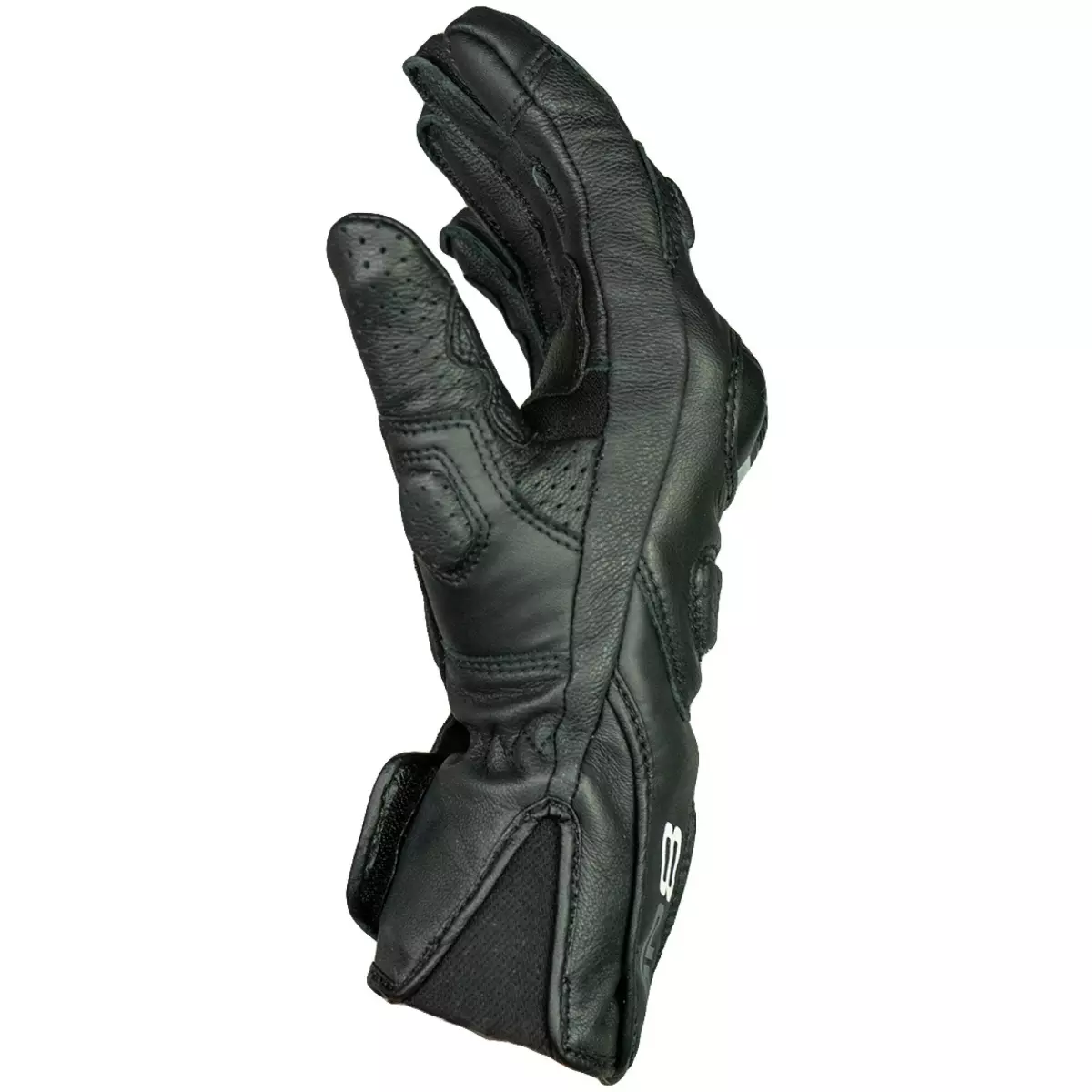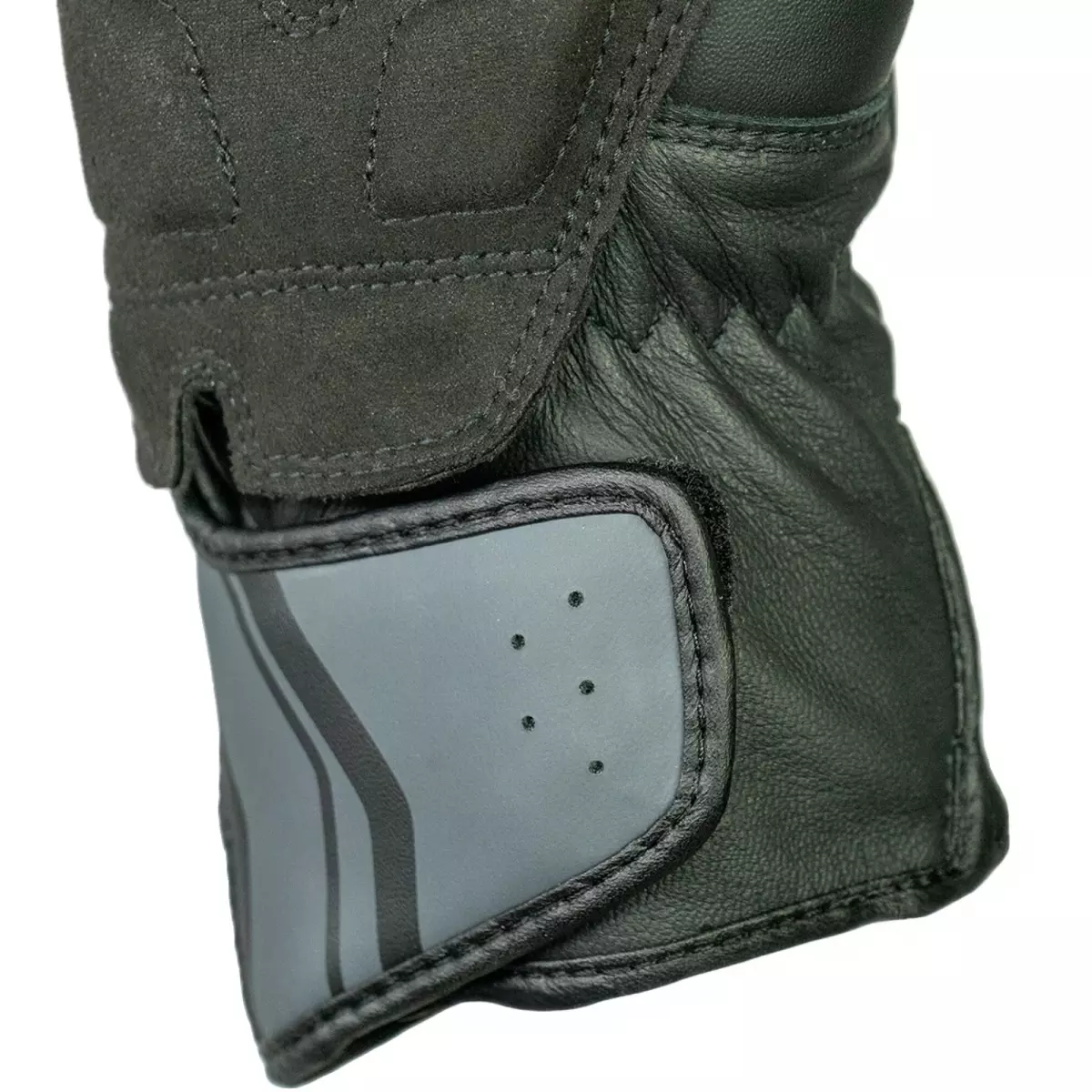 - Cuir perforé au niveau de la manchette et sur les côtés des doigts