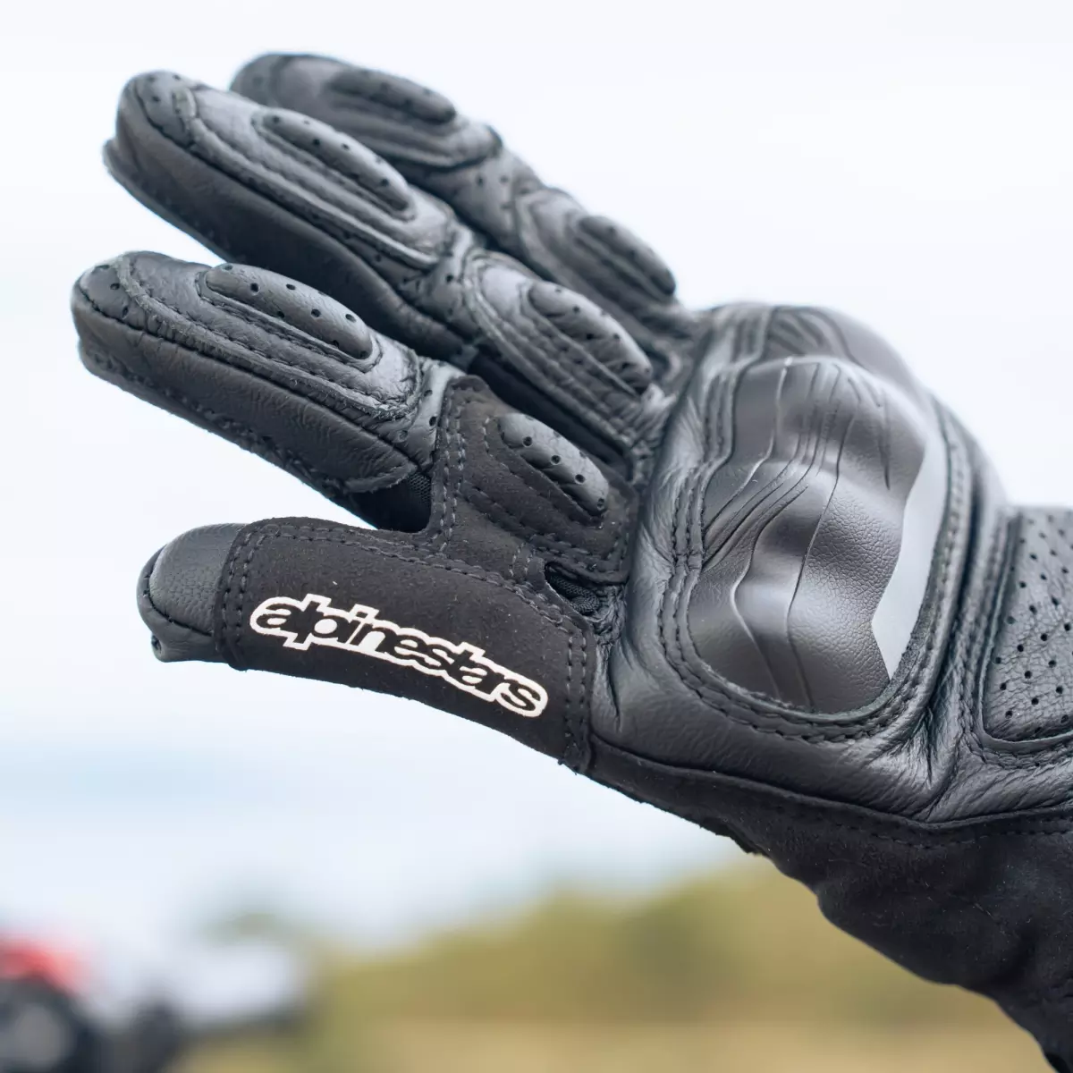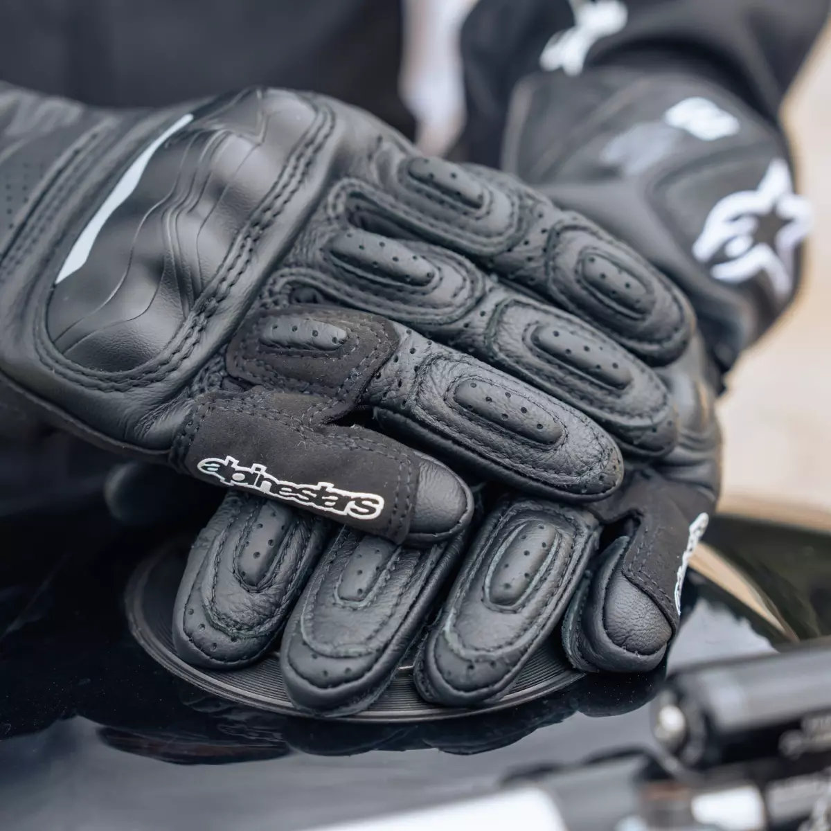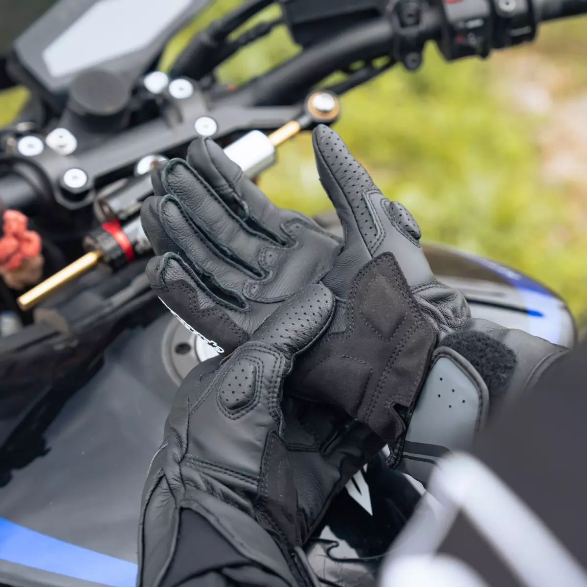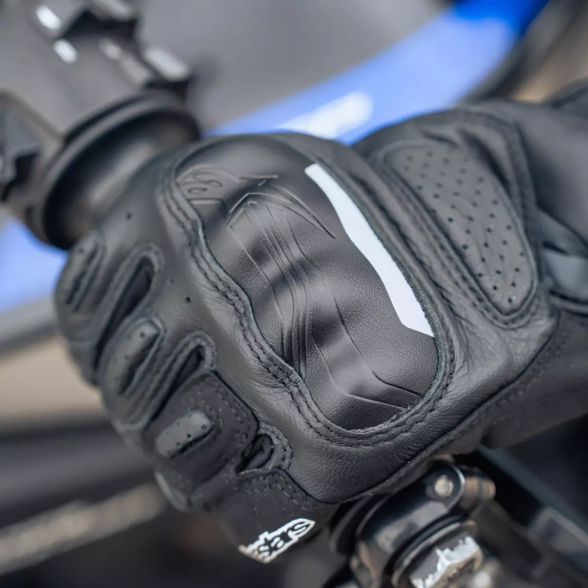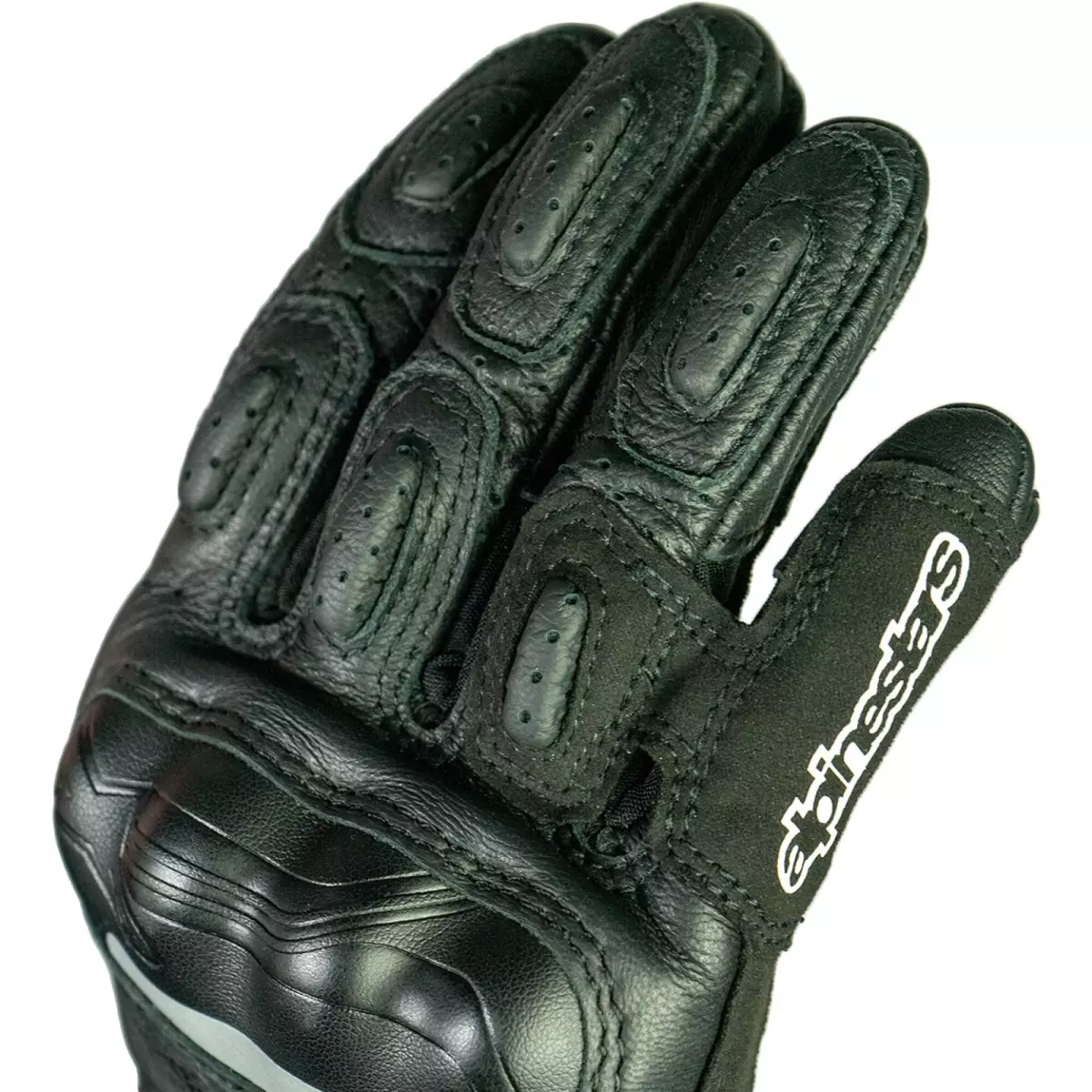 - Cuir perforé au niveau de la manchette et sur les côtés des doigts