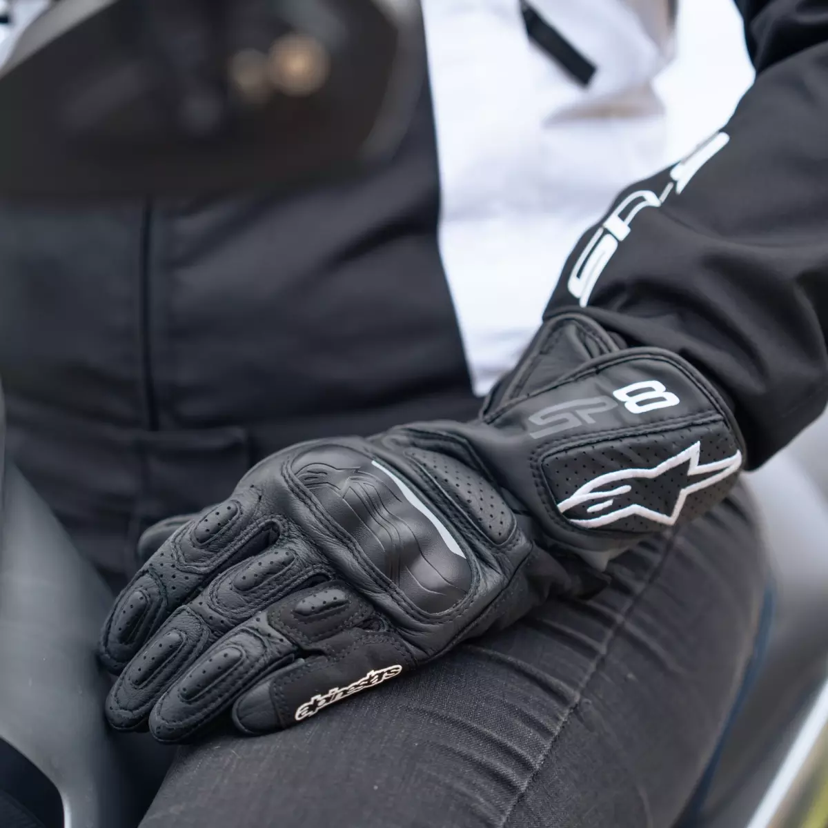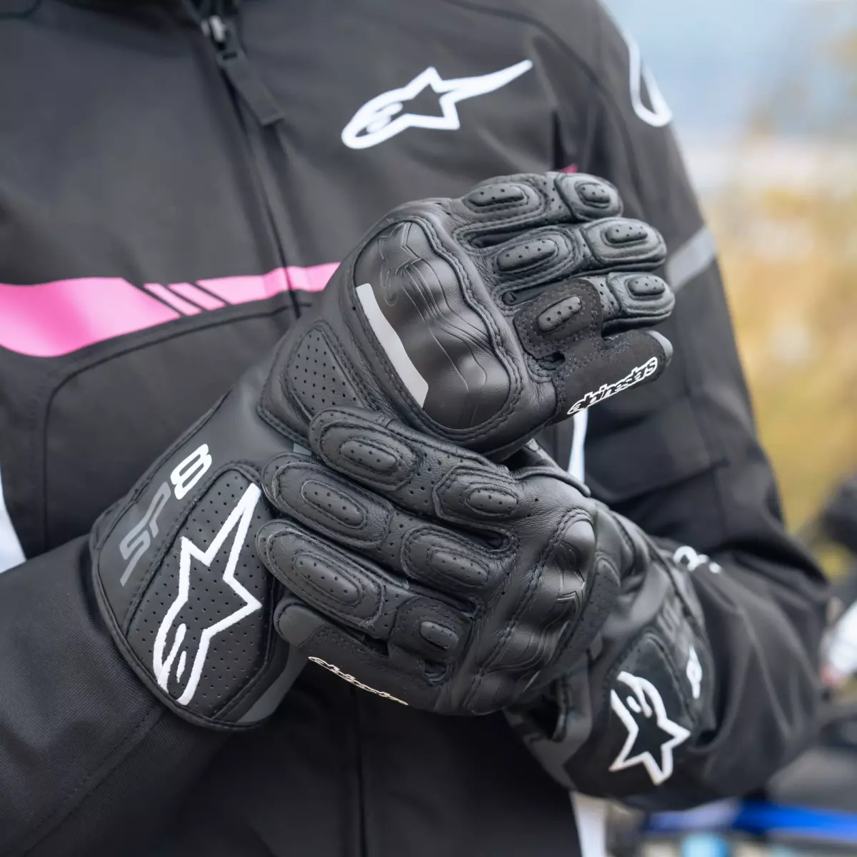 Alpinestars vous propose ses gants racing pour femme, les Stella SP-8 V2 en coloris noir et gris.
